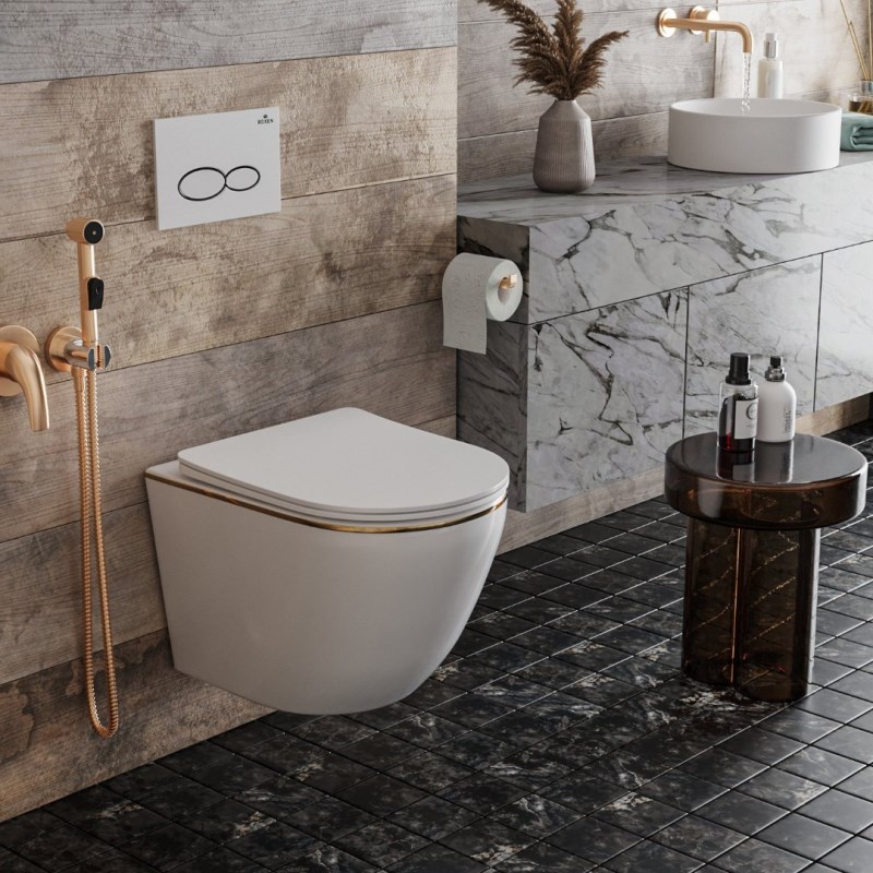 Унитаз подвесной безободковый Roxen Antares Gold с крышкой. Все характеристики |