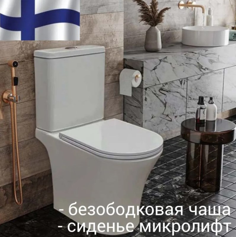 В комплекте: чаша, бачок, сливная арматура, сиденье с крышкой микролифт, набор креплений к полу. |