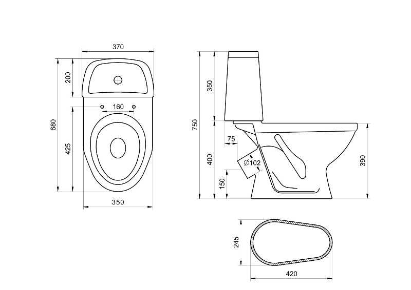 В комплекте: чаша, бачок, арматура с кнопкой на один режим смыва (РФ), сидение с полипропиленовой крышкой и пластиковыми креплениями. |