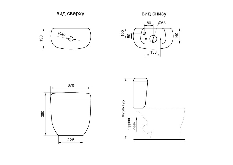 В комплекте: чаша, бачок, арматура с кнопкой на один режим смыва (РФ), сиденье с крышкой полипропиленовой и пластиковыми креплениями. |