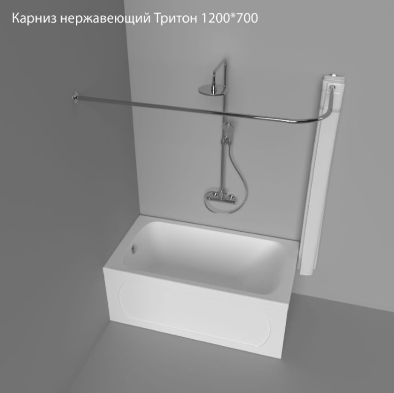 Карниз для ванной Triton 120x70 для шторки г-образный, сталь, хром, Щ0000052834. Все характеристики |
