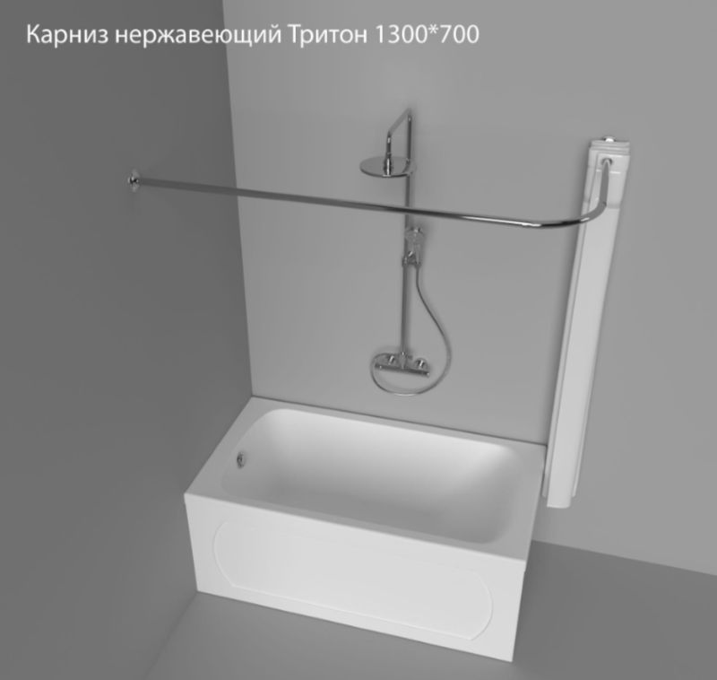 Карниз для ванной Triton 130x70 для шторки г-образный, сталь, хром, Щ0000052835. Все характеристики |