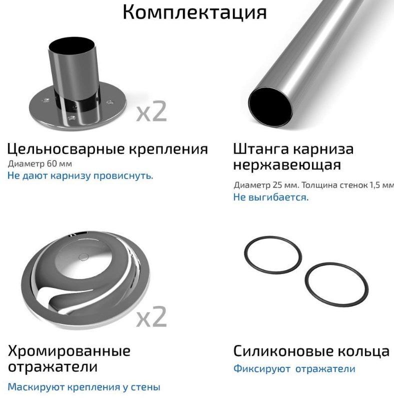 В комплекте: крепеж.Дополнительно комплектуется: кольца, шторка. |