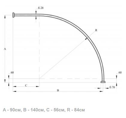 Карниз для ванной Adah 140x90 39803 для шторки дуговой. Все характеристики |