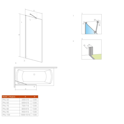 Душевая шторка на ванну Radaway Idea PNJ 100x150