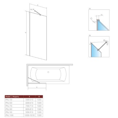 Душевая шторка на ванну Radaway Modo New Black PNJ 50x150. Все характеристики |