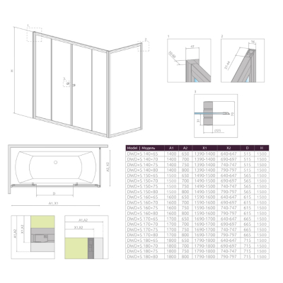 Шторка на ванну Radaway Vesta S 80x150, ткань, для бокового сегмента 204080-06. Закаленное безопасное стекло толщиной 5 мм. Стекло крепится к стене при помощи пристенных профилей с регулировкой. Антигрязевое покрытие стекла EasyClean. Цвет шторки-ткань (фабрик). Изображение и цвет на мониторе могут отличаться от оригинала. Комплектность: