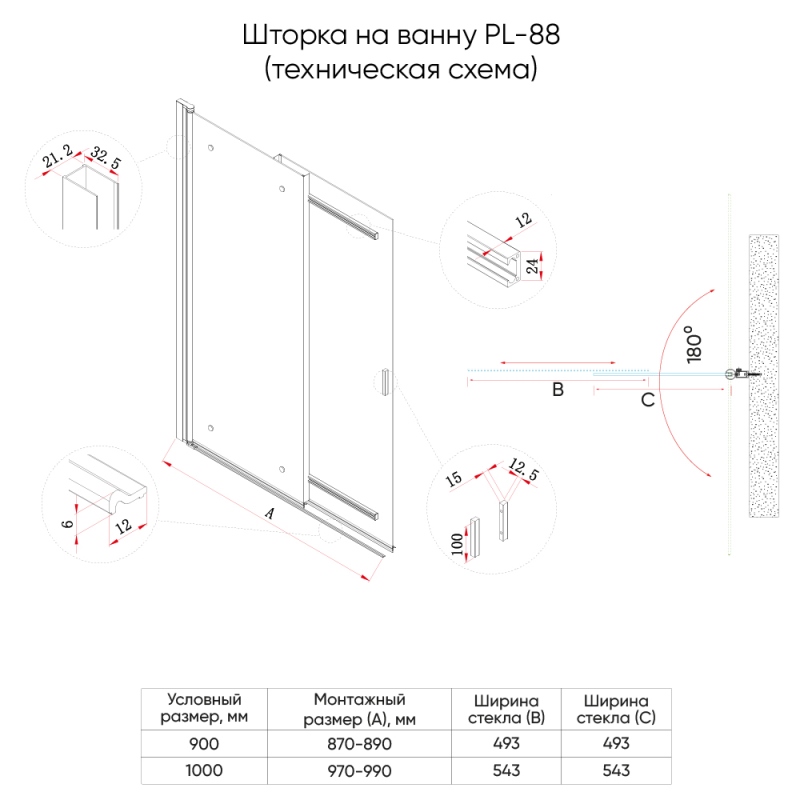 Душевое ограждение для ванны Veconi PL-88CH 90x150 см PL88CH-90-01-C8 из закаленного безопасного стекла.Свойства. Профиль из анодированного алюминия. Простой монтаж. Универсальная установка. Производство. Компания Veconi занимается выпуском душевых ограждений и поддонов. Современное оборудование. Собственный конструкторский отдел. Качество. Продукция отвечает международным требованиям и нормам. Европейская фурнитура. Сдержанный итальянский дизайн. Качество Европа. Изображение и цвет на мониторе могут отличаться от оригинала. |