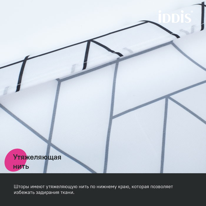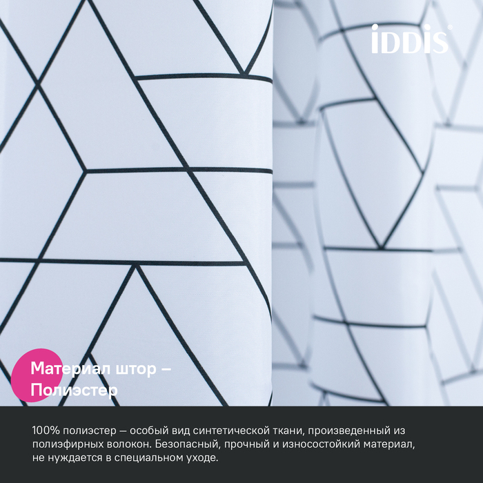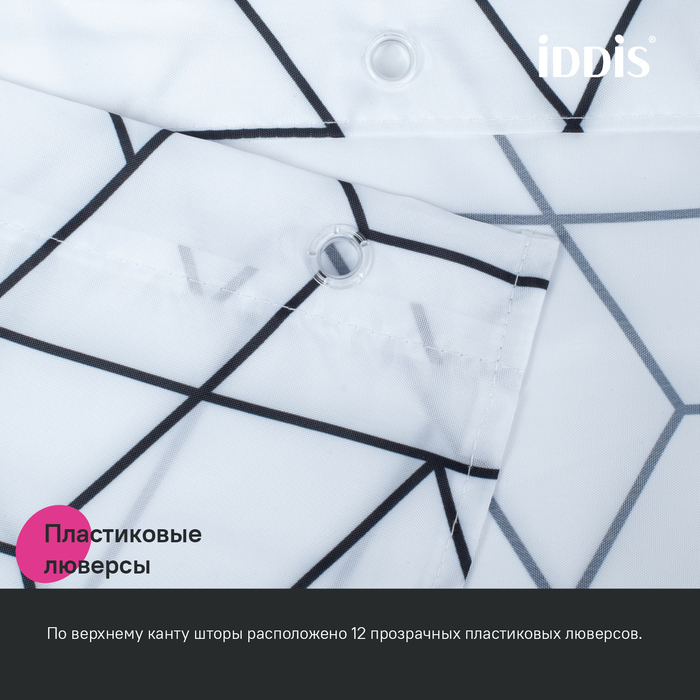 Текстильная шторка для ванны Iddis Base 180x200, черно-белый. Все характеристики |