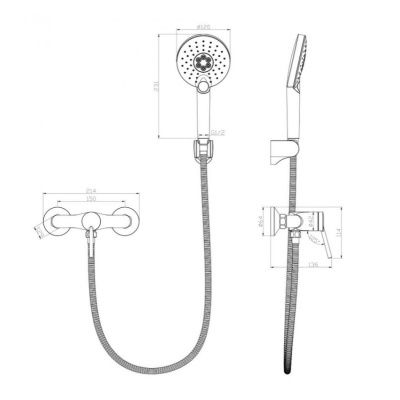 В комплекте: душевой шланг, настенное крепление, лейка. |