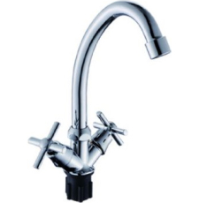 Вентильные. Это самые простые и бюджетные по цене краны для кухни, за напор и температуру воды в которых отвечают вентильные рукоятки с кран-буксами.
