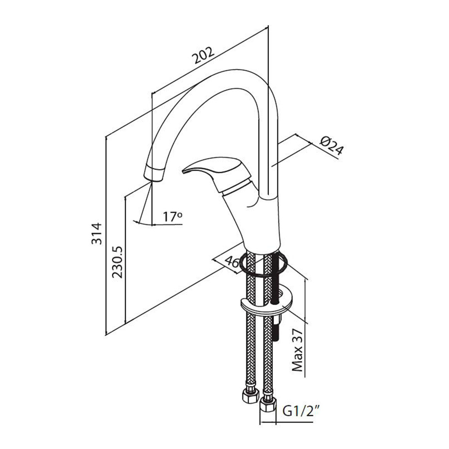 В комплекте: гибкая подводка. |