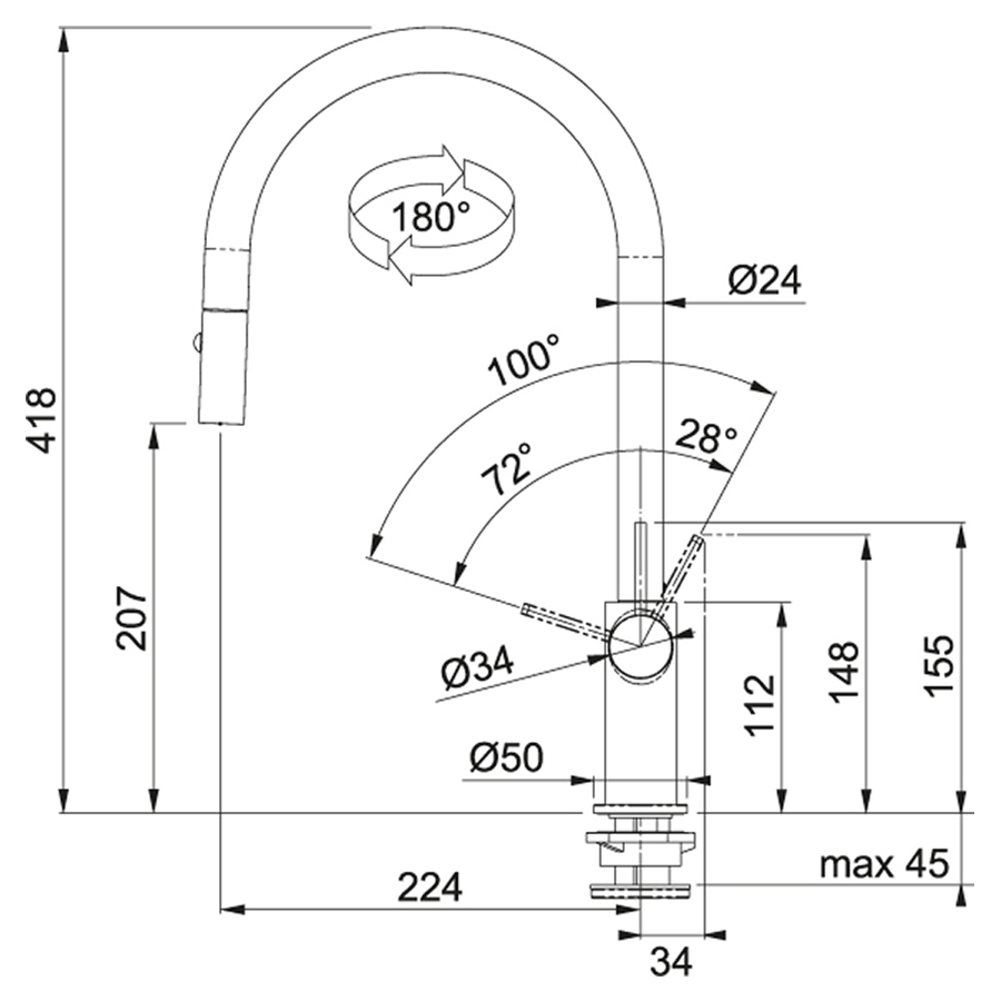 Смеситель для кухни Franke Ambient 115.0289.532, с выдвижной лейкой, миндаль. Все характеристики |