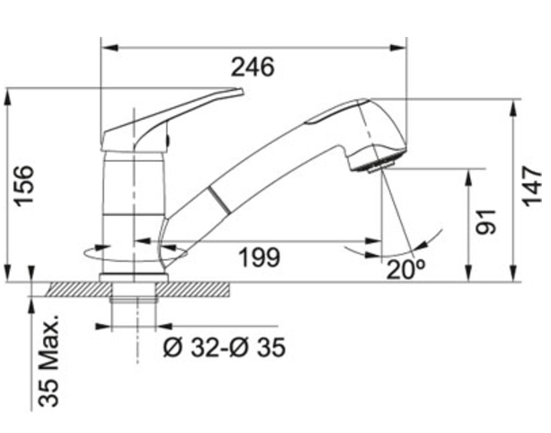 Смеситель для кухни Franke Senga 115.0275.355 с выдвижной лейкой кофе (сахара). Все характеристики |