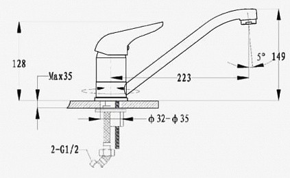 Смеситель для кухни GranFest 2124, салатовый. Покрытие корпуса-эмаль. Для умывальника с отверстием под смеситель диаметром 32-35 мм. Изображение и цвет на мониторе могут отличаться от оригинала. Комплектность: