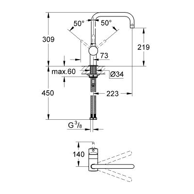 Смеситель для кухни Grohe Minta 32488DC0, поворотный излив. Все характеристики |