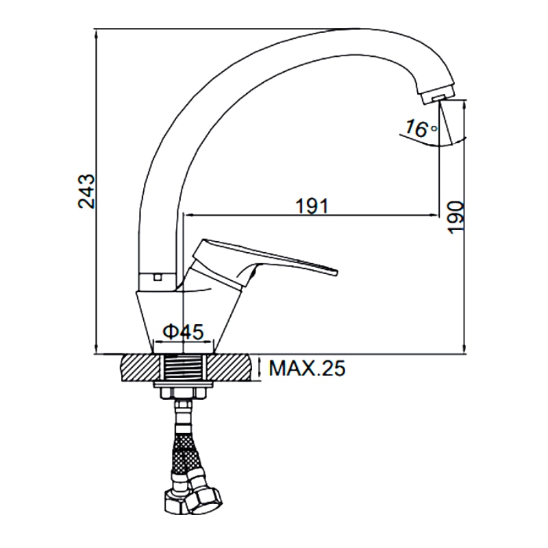В комплекте: гибкая подводка 40 см, гайка. |
