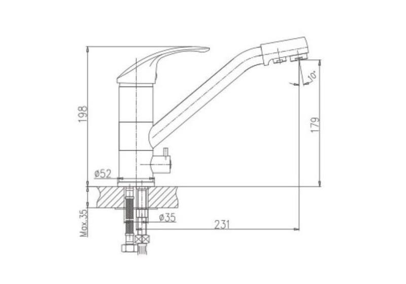 Смеситель для кухни Marrbaxx КМ010/Q4 М010Q004, с фильтром для питьевой воды, черный. Все характеристики |