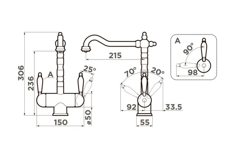 Смеситель для кухни Omoikiri Amagasaki-BL 4994067, под фильтр, черный из высококачественной латуни с покрытием из Tetogranit.Свойства. При изготовлении смесителей Omoikiri используется латунь без содержания свинца, благодаря чему сохраняется чистота и полезные для здоровья свойства воды. Технология Pure Life: подключение фильтра для очистки воды. Фильтрованная вода подается по отдельной трубке и не смешивается с водопроводной водой. Смеситель для кухни Amagasaki-BL 4994067 оснащен аэратором с регулятором расхода воды, который произведен из специального полимерного материала, на нем никогда не появится известковый налет и ржавчина. Керамический картридж D3.5 см. Угол поворота-360 градусов. Отверстие для установки-3.5 см. Производство. Бренд Omoikiri известен на внешних рынках Европы, Америки и Австралии с 1992. Изделия премиум-класса изготавливают по новым усовершенствованным промышленным технологиям на нескольких заводах в Азии, Европе и России. Высококвалифицированные специалисты ежегодно проходят переподготовку и дополнительное обучение со сдачей экзамена для подтверждения своей квалификационной степени. Качество. Эксклюзивная серия смесителей Omoikiri производится по уникальной японской технологии. Все материалы проходят термическую обработку, которая позволяет устранить вредные для здоровья человека оксиды тяжелых металлов. Качество стали строго контролируется при закупке производственных материалов. смесители Omoikiri проходят через систему тестов, включающих в себя: тестирование комплектующих смесителя согласно европейскому стандарту EN 817, тест в кислотно-щелочных средах, тест на сквозную коррозию гальванического покрытия смесителей, прожигание гальванического покрытия и замер слоев нанесенных металлов. Завершающим этапом служит тестирование каждого смесителя после сборки. Дизайн. Уникальный инновационный дизайнерский подход с собственным конструкторским бюро с филиалами в США и Швеции. Креативная команда разрабатывает продукцию, которая становится украшением любого кухонного интерьера: от обычного и без излишеств до классического и современного. Коллекция ANTIQUE TIMES-латунные смесители, обладающие изысканными формами и изгибами. Цвет: черный BL 85. Гарантия. Длительная гарантия на все смесители - 5 лет. Изображение и цвет на мониторе могут отличаться от оригинала. Комплектность: