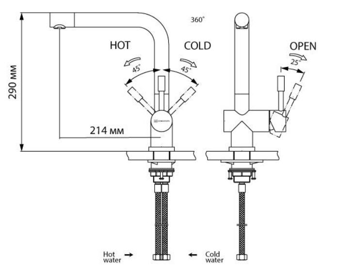 Смеситель для кухни Omoikiri Koriyama 4991005, под фильтр, нержавеющая сталь. Все характеристики |