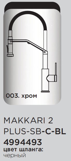Смеситель для кухни Omoikiri Makkari 2 Plus-SB-C-BL 4994493, под фильтр, хром, черный. Все характеристики |