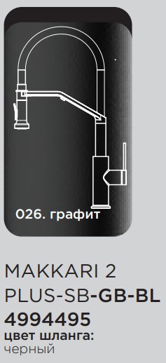 Смеситель для кухни Omoikiri Makkari 2 Plus-SB-GB-BL 4994495, под фильтр, графит, черный. Все характеристики |