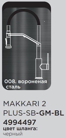 Смеситель для кухни Omoikiri Makkari 2 Plus-SB-GM-BL 4994497, под фильтр, вороненая сталь, черный. Все характеристики |
