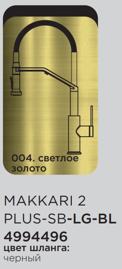 Смеситель для кухни Omoikiri Makkari 2 Plus-SB-LG-BL 4994496, под фильтр, светлое золото, черный. Все характеристики |