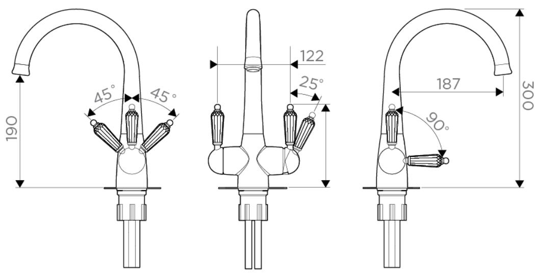Смеситель для кухни Omoikiri Okinawa-AB 4994056, под фильтр, Swarovski, античная латунь. Все характеристики |