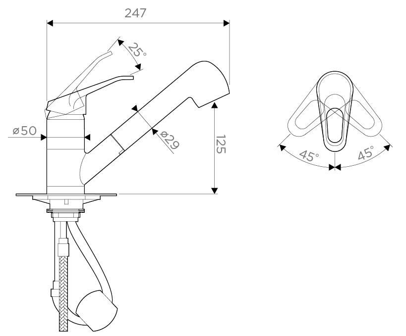 Смеситель для кухни Omoikiri Takayama-S OTA-CR-40, с выдвижной лейкой, хром. Все характеристики |