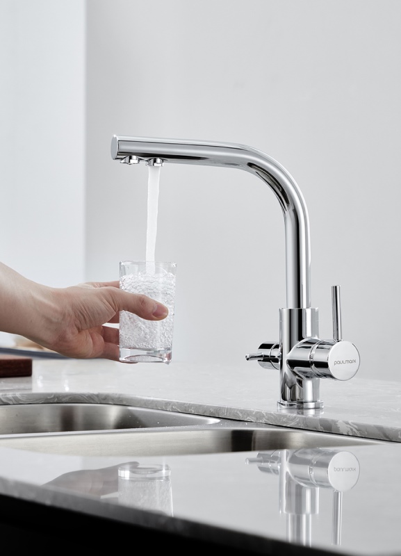 Смеситель для кухни Paulmark Essen Es213011-GR, с фильтром для питьевой воды, серый