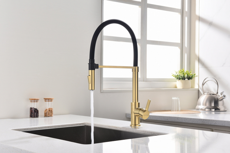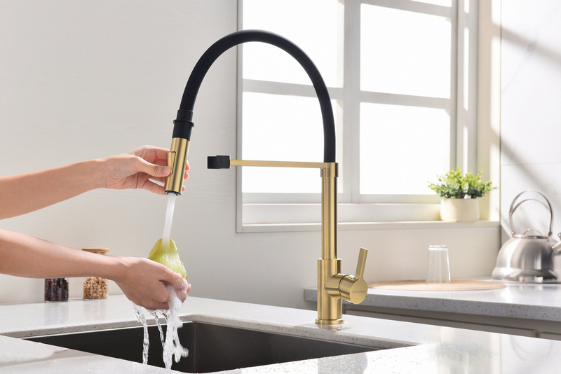 Смеситель для кухни Paulmark Halt Ha214021-G с гибким изливом, золото. Все характеристики |