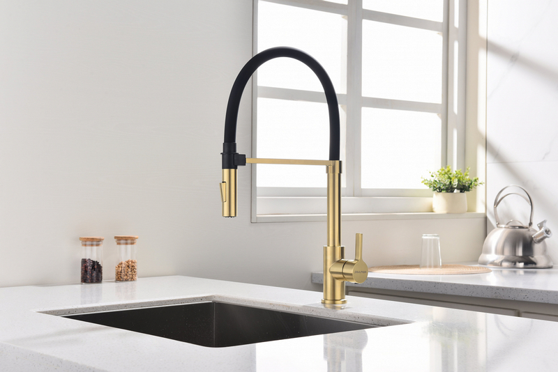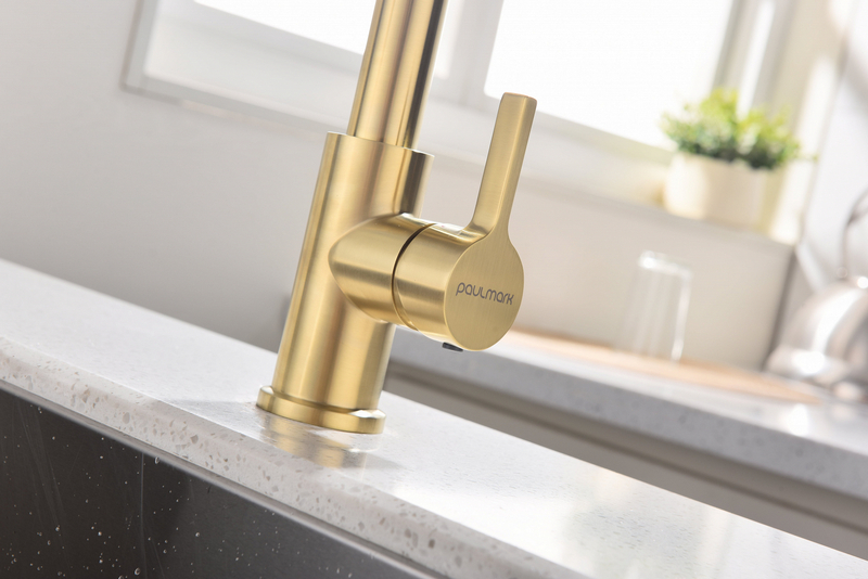 Смеситель для кухни Paulmark Halt Ha214021-SBG с гибким изливом, светлое брашир. золото. Все характеристики |