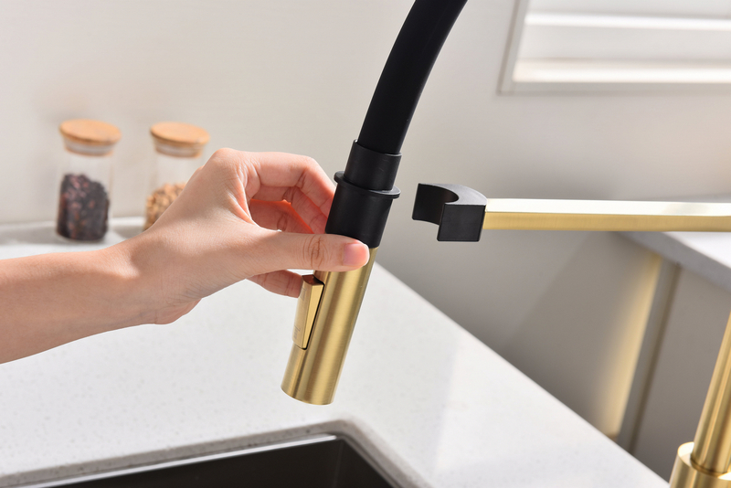 Смеситель для кухни Paulmark Halt Ha214021-SBG, светлое брашированное золото из высококачественной латуни.Свойства. Гибкий излив из силикона обеспечивает оптимальный диапазон движения. Свободное вращение излива на 360°. Надёжная фиксация крепление гибкого излива с помощью магнитного держателя. 2 режима подачи воды-ламинарный режим струи и режим струи SpeedClean - деликатный душ. Автоматическое возвратное переключение на ламинарный режим струи. Высота-483 мм. Глубина излива-230 мм. Керамический картридж длительного срока эксплуатации с низким уровнем шума, плавным ходом, устойчивостью к высокому давлению и прочными керамическими дисками (до 100 000 циклов). Подключение через гибкие соединительные шланги длиной 400 мм из нержавеющей стали, гайки G1/2", усиленный комплект крепления Смеситель Halt Ha214021-SBG для кухни. Гарантия. Продолжительная гарантия на изделие - 5 лет. Изображение и цвет на мониторе могут отличаться от оригинала. Комплектность: