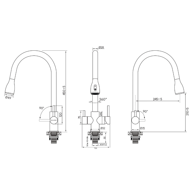 Смеситель для кухни Paulmark Lange La214212-SBG с гибким изливом, под фильтр, светлое брашир. золото из высококачественной латуни.Свойства. Выдвижной поворотный излив с возможностью подключения фильтра питьевой воды. Свободное вращение излива на 180°. Отдельное управление открытием потока питьевой воды. Высота-450 мм. Глубина излива-245 мм. Переключатель: ламинарный режим струи/режим струи SpeedClean, автоматическое возвратное переключение на ламинарный режим струи. Керамический картридж длительного срока эксплуатации с низким уровнем шума, плавным ходом, устойчивостью к высокому давлению и прочными керамическими дисками (до 100 000 циклов). Смеситель Lange La214212-SBG, под фильтр для кухни. Гарантия. Продолжительная гарантия на изделие - 5 лет. Изображение и цвет на мониторе могут отличаться от оригинала. Комплектность: