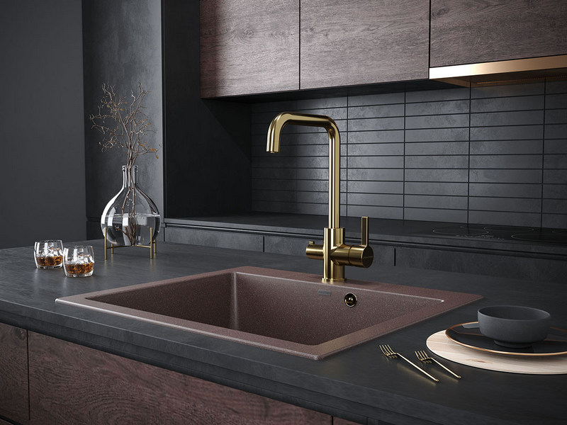 Смеситель для кухни Paulmark Logas Lo213021-G, под фильтр, золото. Все характеристики |