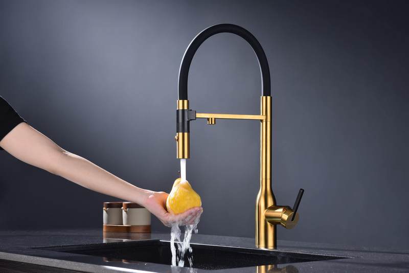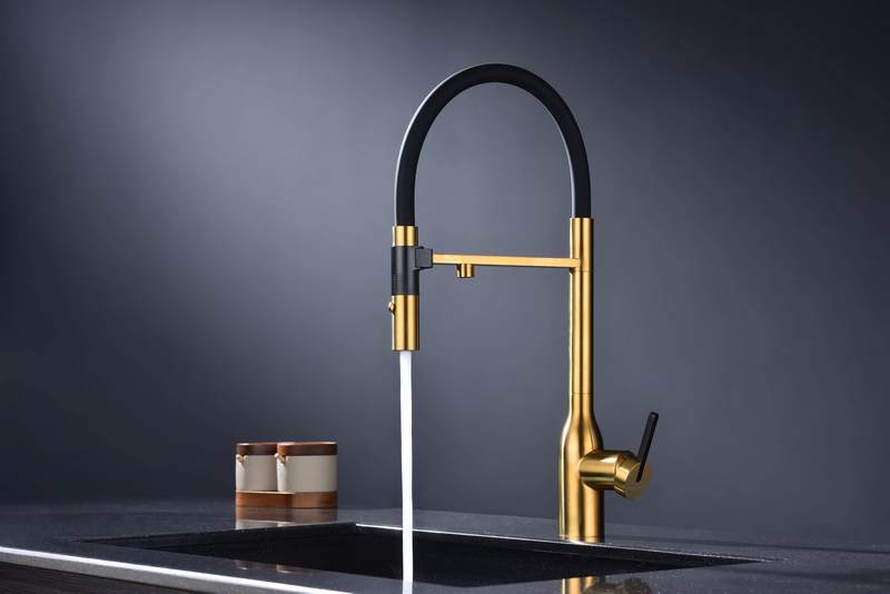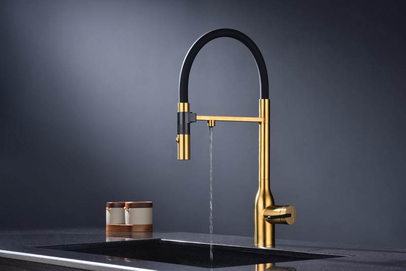 Смеситель для кухни Paulmark Magneto One Ma213188-BG с гибким изливом, под фильтр, брашированное золото. Все характеристики |