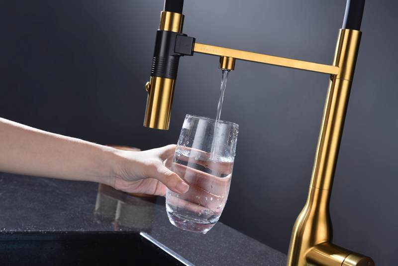 Кухонный питьевой смеситель Paulmark Magneto One Ma213188-BG под фильтр, брашированное золото из высококачественной латуни.Свойства. Гибкий излив из силикона обеспечивает оптимальный диапазон движения. Свободное вращение излива на 360°. Надёжная фиксация крепления гибкого излива с помощью магнитного держателя. 2 режима подачи воды-ламинарный режим струи и режим струи SpeedClean - деликатный душ. Автоматическое возвратное переключение на ламинарный режим струи. Высота-514 мм. Глубина излива-220 мм. Керамический картридж длительного срока эксплуатации с низким уровнем шума, плавным ходом, устойчивостью к высокому давлению и прочными керамическими дисками (до 100 000 циклов). Смеситель Magneto One Ma213188-BG, под фильтр для кухни. Гарантия. Продолжительная гарантия на изделие - 5 лет. Изображение и цвет на мониторе могут отличаться от оригинала. Комплектность: