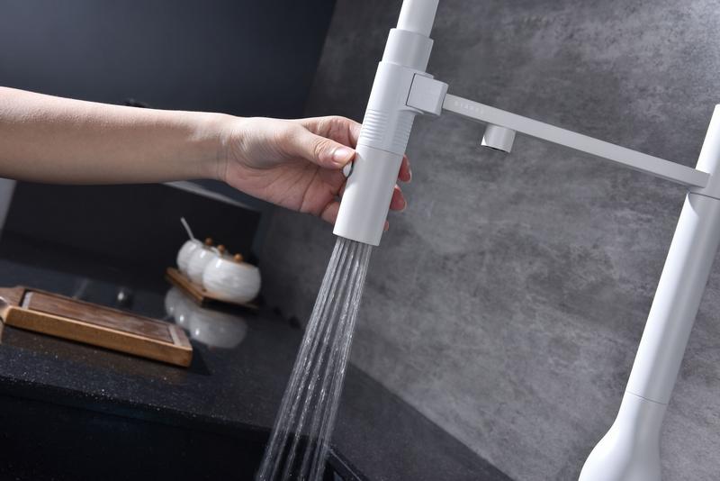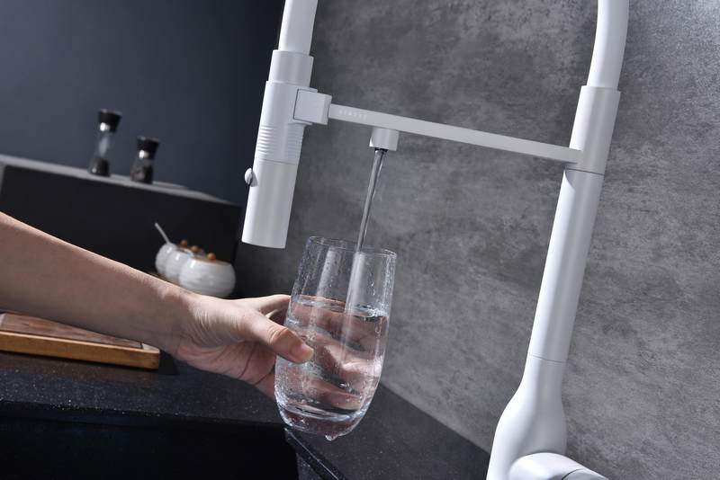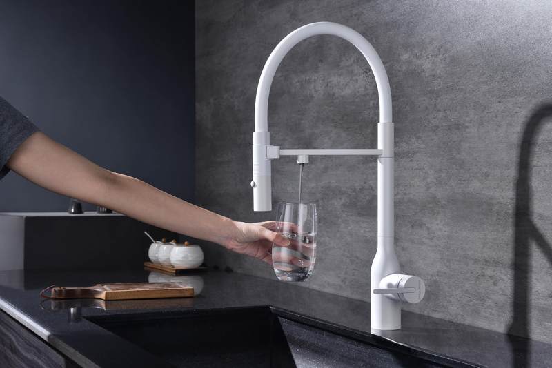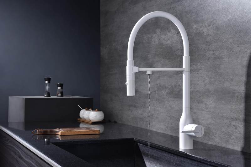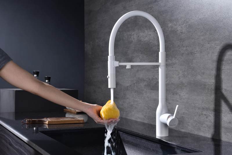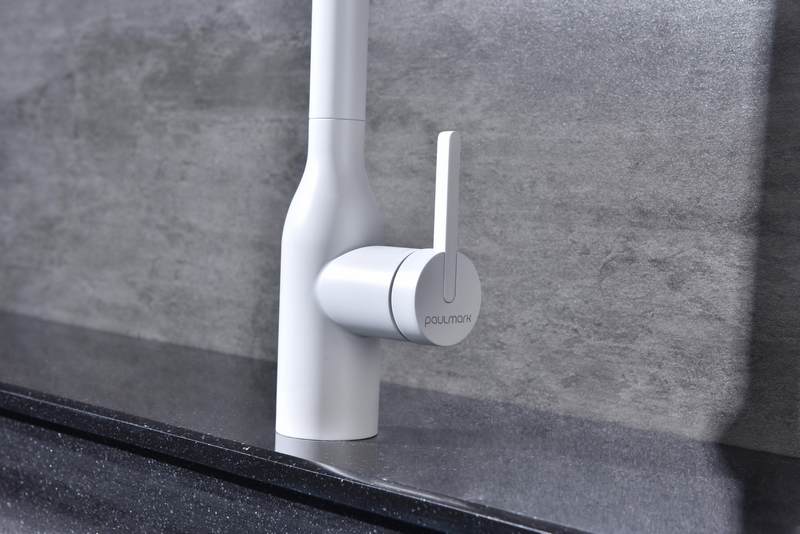 Смеситель для кухни Paulmark Magneto One Ma213188-WH с гибким изливом, под фильтр, белый. Все характеристики |