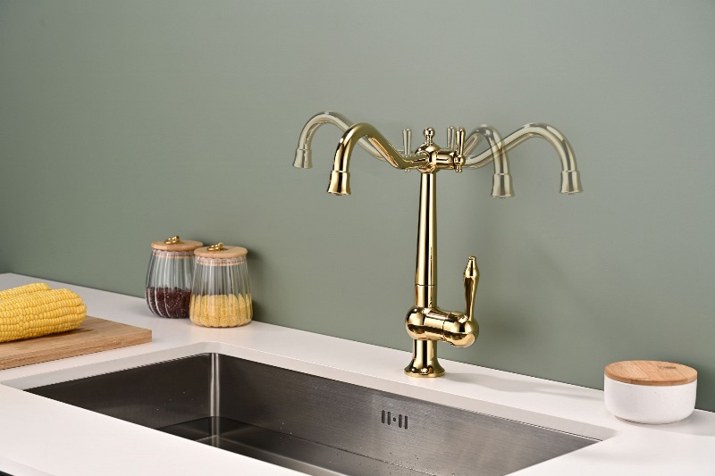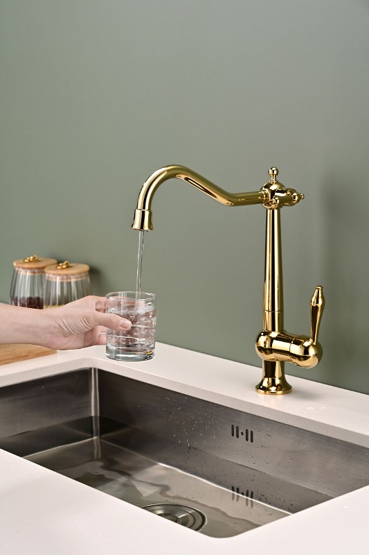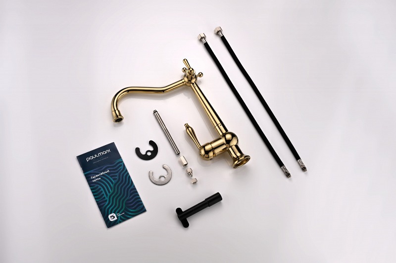 Смеситель для кухни Paulmark Retro Re213226-G, под фильтр, золото. Все характеристики |