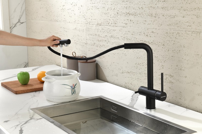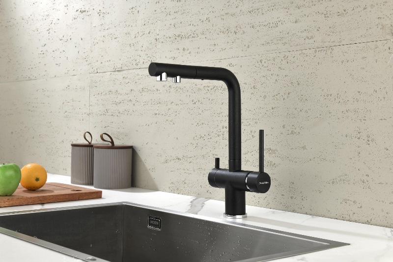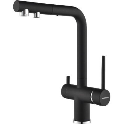 Смеситель для кухни Paulmark Serpentine Se213222-418(BLM), под фильтр, черный металлик из высококачественной латуни.Свойства. Смеситель для кухни с выдвижным поворотным изливом, с возможностью подключения фильтра питьевой воды. Отдельная ручка для открытия питьевой воды. Высота-310 мм. Глубина излива-221 мм. Керамический картридж длительного срока эксплуатации с низким уровнем шума, плавным ходом, устойчивостью к высокому давлению и прочными керамическими дисками (до 100 000 циклов). Смеситель Serpentine Se213222-418(BLM) под фильтр для кухни. Гарантия. Продолжительная гарантия на изделие - 5 лет. Изображение и цвет на мониторе могут отличаться от оригинала. Комплектность: