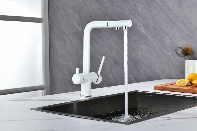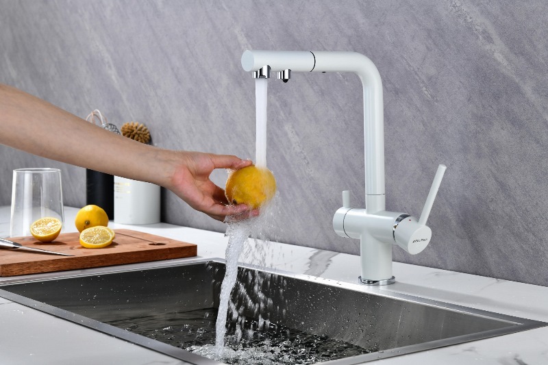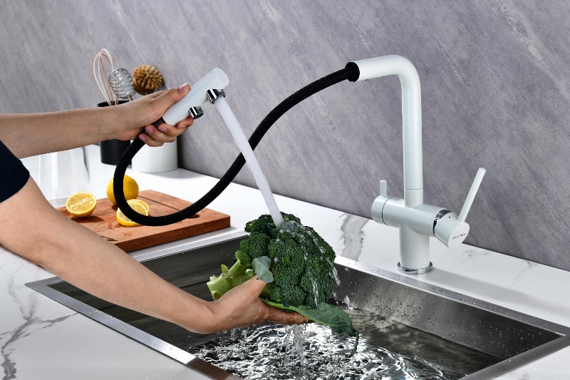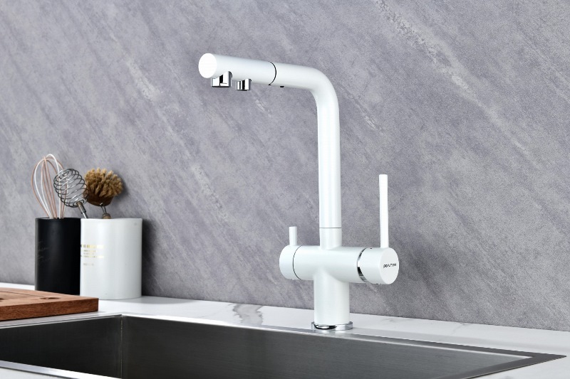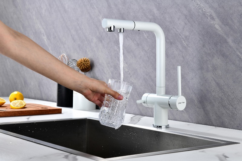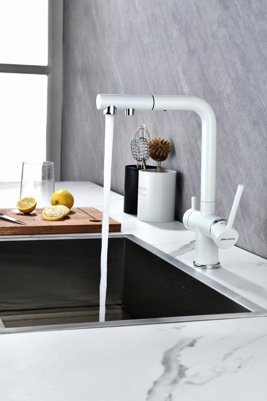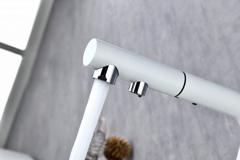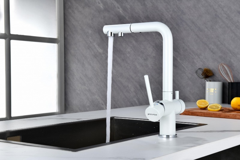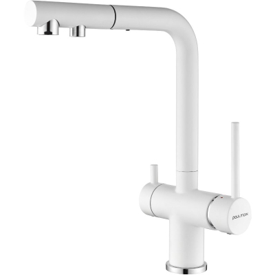 Смеситель для кухни Paulmark Serpentine Se213222-431(WH), под фильтр, матовый белый из высококачественной латуни.Свойства. Смеситель для кухни с выдвижным поворотным изливом, с возможностью подключения фильтра питьевой воды. Отдельная ручка для открытия питьевой воды. Высота-310 мм. Глубина излива-221 мм. Керамический картридж длительного срока эксплуатации с низким уровнем шума, плавным ходом, устойчивостью к высокому давлению и прочными керамическими дисками (до 100 000 циклов). Смеситель Serpentine Se213222-431(WH) под фильтр для кухни. Гарантия. Продолжительная гарантия на изделие - 5 лет. Изображение и цвет на мониторе могут отличаться от оригинала. Комплектность: