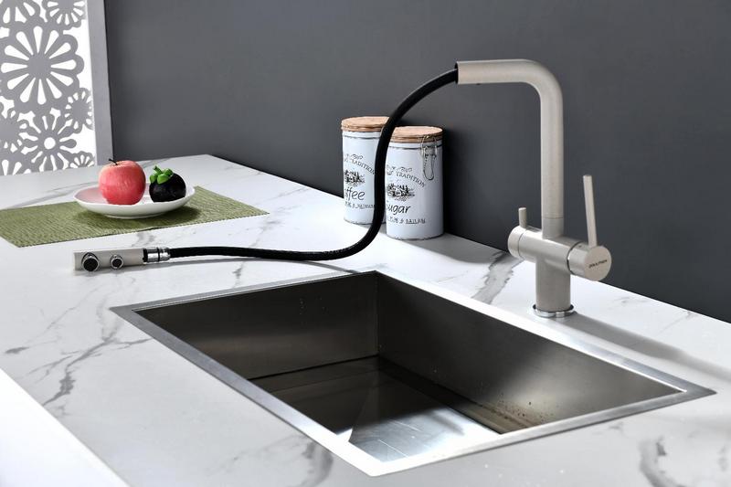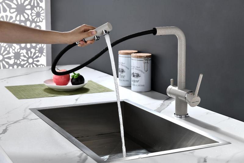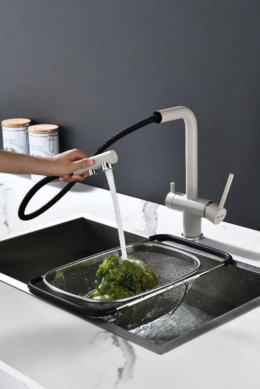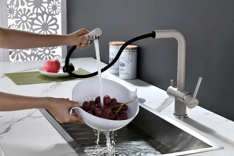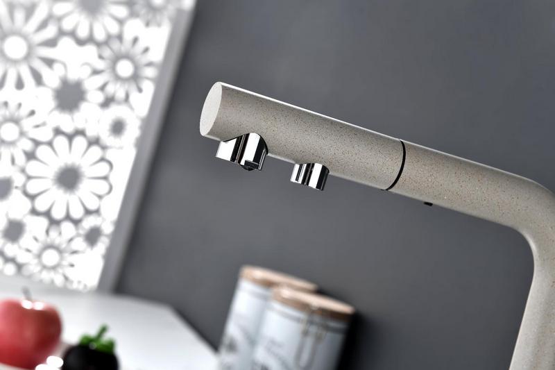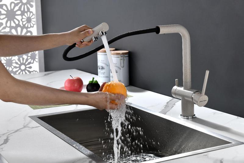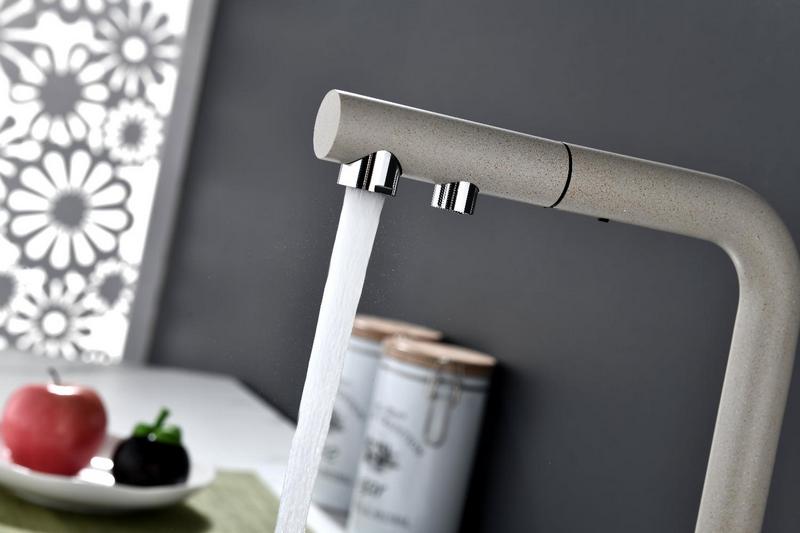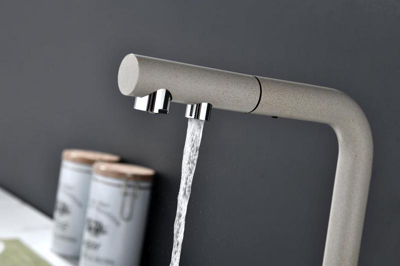 Смеситель для кухни Paulmark Serpentine Se213222-BE, под фильтр, бежевый из высококачественной латуни.Свойства. Смеситель для кухни с выдвижным поворотным изливом, с возможностью подключения фильтра питьевой воды. Отдельная ручка для открытия питьевой воды. Высота-310 мм. Глубина излива-221 мм. Керамический картридж длительного срока эксплуатации с низким уровнем шума, плавным ходом, устойчивостью к высокому давлению и прочными керамическими дисками (до 100 000 циклов). Смеситель Serpentine Se213222-BE под фильтр для кухни. Гарантия. Продолжительная гарантия на изделие - 5 лет. Изображение и цвет на мониторе могут отличаться от оригинала. Комплектность: