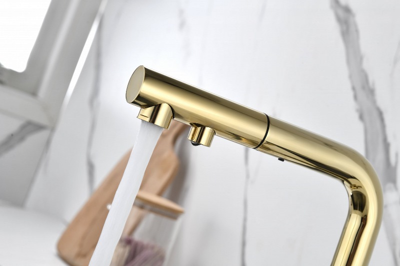 Смеситель для кухни Paulmark Serpentine Se213222-BG, под фильтр, брашированное золото из высококачественной латуни.Свойства. Смеситель для кухни с выдвижным поворотным изливом, с возможностью подключения фильтра питьевой воды. Отдельная ручка для открытия питьевой воды. Высота-310 мм. Глубина излива-221 мм. Керамический картридж длительного срока эксплуатации с низким уровнем шума, плавным ходом, устойчивостью к высокому давлению и прочными керамическими дисками (до 100 000 циклов). Смеситель Serpentine Se213222-BG под фильтр для кухни. Гарантия. Продолжительная гарантия на изделие - 5 лет. Изображение и цвет на мониторе могут отличаться от оригинала. Комплектность: