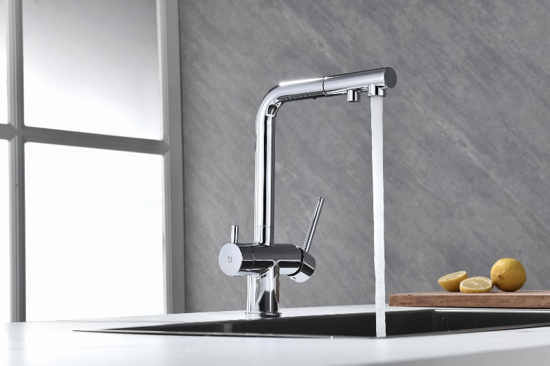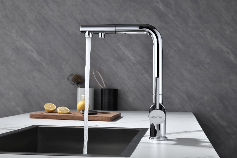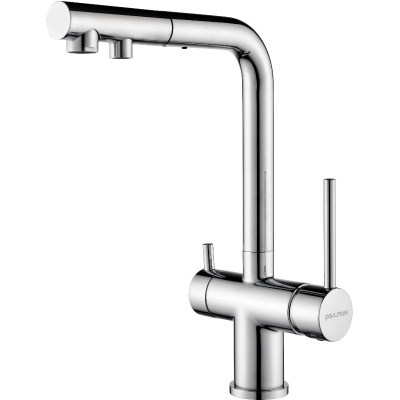 Смеситель для кухни Paulmark Serpentine Se213222-CR, под фильтр, хром из высококачественной латуни.Свойства. Смеситель для кухни с выдвижным поворотным изливом, с возможностью подключения фильтра питьевой воды. Отдельная ручка для открытия питьевой воды. Высота-310 мм. Глубина излива-221 мм. Керамический картридж длительного срока эксплуатации с низким уровнем шума, плавным ходом, устойчивостью к высокому давлению и прочными керамическими дисками (до 100 000 циклов). Смеситель Serpentine Se213222-CR под фильтр для кухни. Гарантия. Продолжительная гарантия на изделие - 5 лет. Изображение и цвет на мониторе могут отличаться от оригинала. Комплектность: