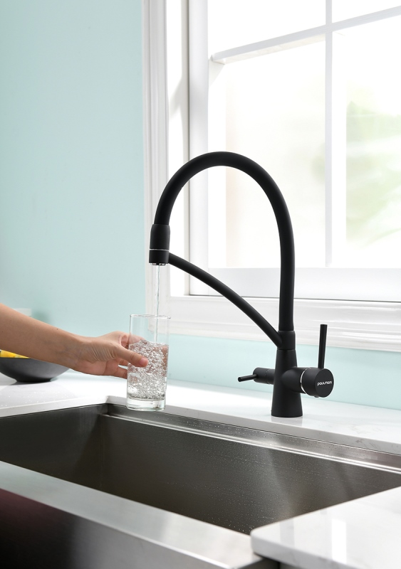 Смеситель для кухни Paulmark Siegen Si213111-401TB(AN), под фильтр, антрацит полностью из высококачественной латуни.Свойства. Гибкий фиксирующийся излив с возможностью подключения фильтра питьевой воды. Свободное вращение излива на 360°. Отдельное управление открытием потока питьевой воды. Защита от обратного потока. Совмещенный излив для фильтра. Высота-430 мм. Глубина излива-230 мм. Керамический картридж длительного срока эксплуатации с низким уровнем шума, плавным ходом, устойчивостью к высокому давлению и прочными керамическими дисками (до 100 000 циклов). Смеситель Siegen Si213111-401TB(AN), под фильтр для кухни. Гарантия. Продолжительная гарантия на изделие - 5 лет. Изображение и цвет на мониторе могут отличаться от оригинала. Комплектность:
