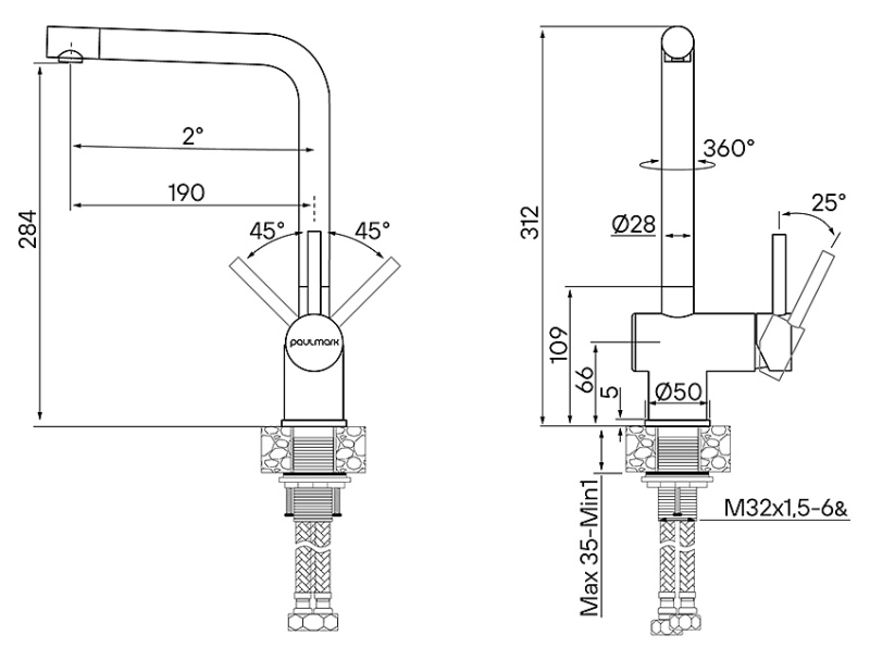 Смеситель для кухни Paulmark Spring Sp212067-GM, вороненая сталь. Все характеристики |