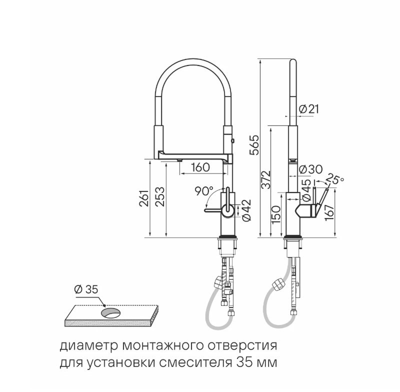 Смеситель для кухни Paulmark Tornado To213402-BC с гибким изливом, под фильтр, брашированная медь. Все характеристики |