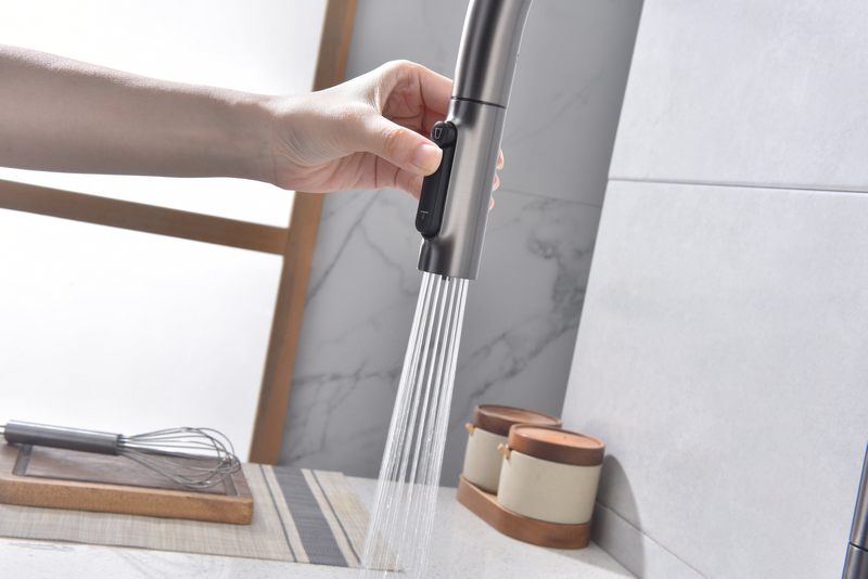 Смеситель для кухни Paulmark Universal Un213880-GM под фильтр, вороненая сталь из высококачественной латуни.Свойства. Конструкция смесителя с вытяжным шлангом. Свободное вращение излива на 180°. Высота-486 мм. Глубина излива-215 мм. Переключатель на ламинарный режим струи/режим струи SpeedClean. Автоматическое возвратное переключение на ламинарный режим струи. Керамический картридж длительного срока эксплуатации с низким уровнем шума, плавным ходом, устойчивостью к высокому давлению и прочными керамическими дисками (до 100 000 циклов). Смеситель Universal Un213880-GM под фильтр для кухни. Гарантия. Продолжительная гарантия на изделие - 5 лет. Изображение и цвет на мониторе могут отличаться от оригинала. Комплектность: