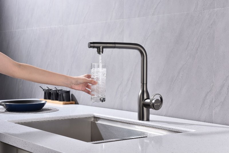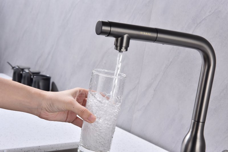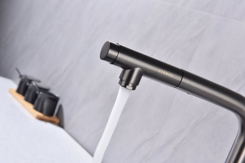 Смеситель для кухни Paulmark Urban Ur213104-B, под фильтр, беретта из высококачественной латуни.Свойства. Выдвижной поворотный излив с возможностью подключения фильтра питьевой воды. Свободное вращение излива на 360°. Кнопка на корпусе для подачи питьевой воды. Высота-333.2 мм. Глубина излива-213.5 мм. Керамический картридж длительного срока эксплуатации с низким уровнем шума, плавным ходом, устойчивостью к высокому давлению и прочными керамическими дисками (до 100 000 циклов). Смеситель Urban Ur213104-B, под фильтр для кухни. Гарантия. Продолжительная гарантия на изделие - 5 лет. Изображение и цвет на мониторе могут отличаться от оригинала. Комплектность:
